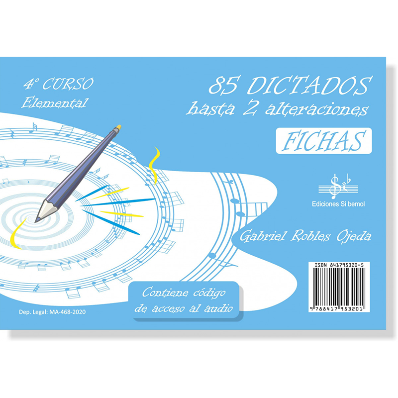 85 DICTADOS HASTA 2 ALTERACIONES SOLUCIONES 4º CURSO (Español) Tapa blanda Nueva Edición 2020 sin CDs. Contiene suscripción ilimitada a los audios a través de la App gratuita de Ediciones Si bemol. Contiene además del método una libreta de pentagrama de regalo.